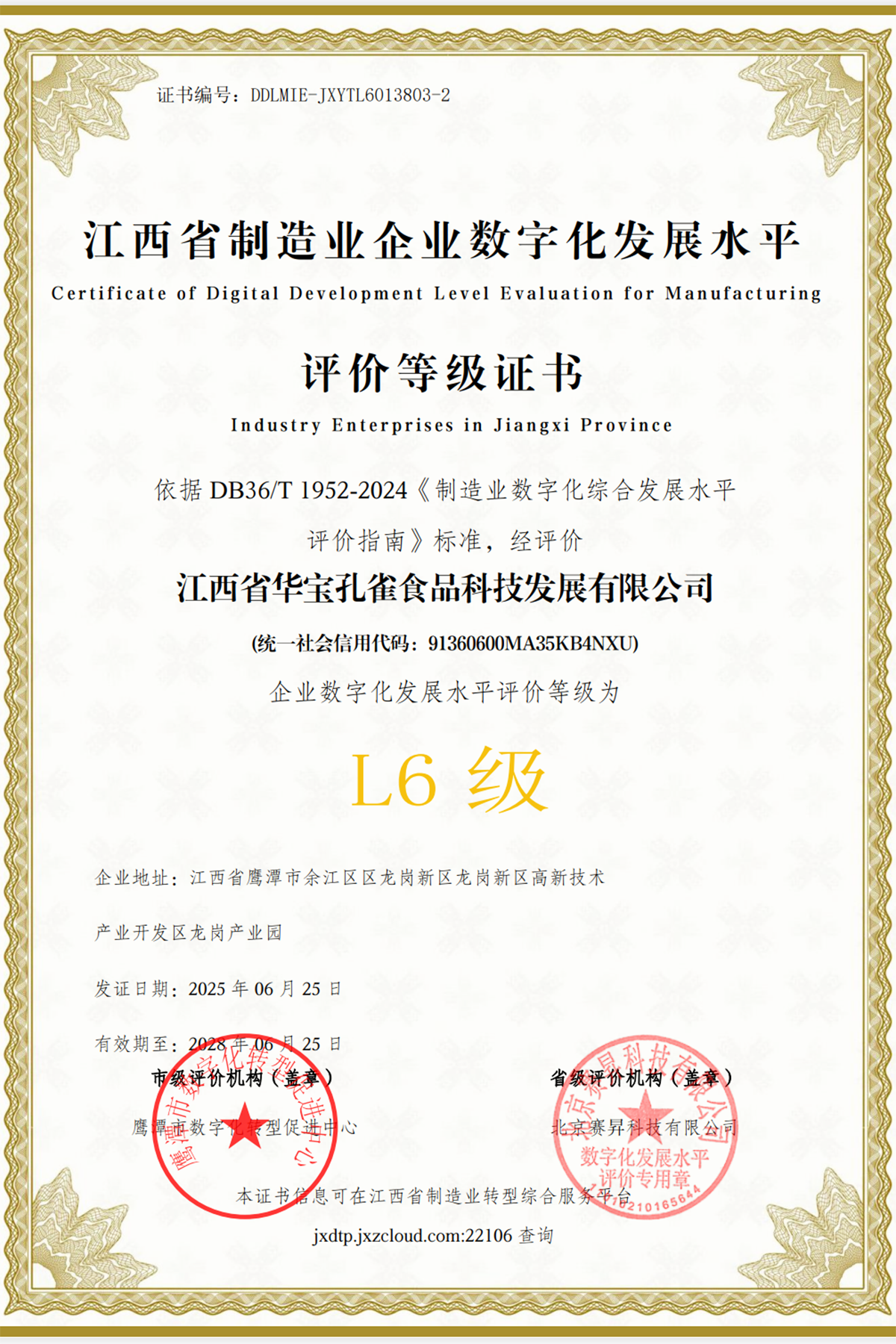 智能化华宝丨江西孔雀荣膺“江西省制造业数字化发展水平L6级认证”