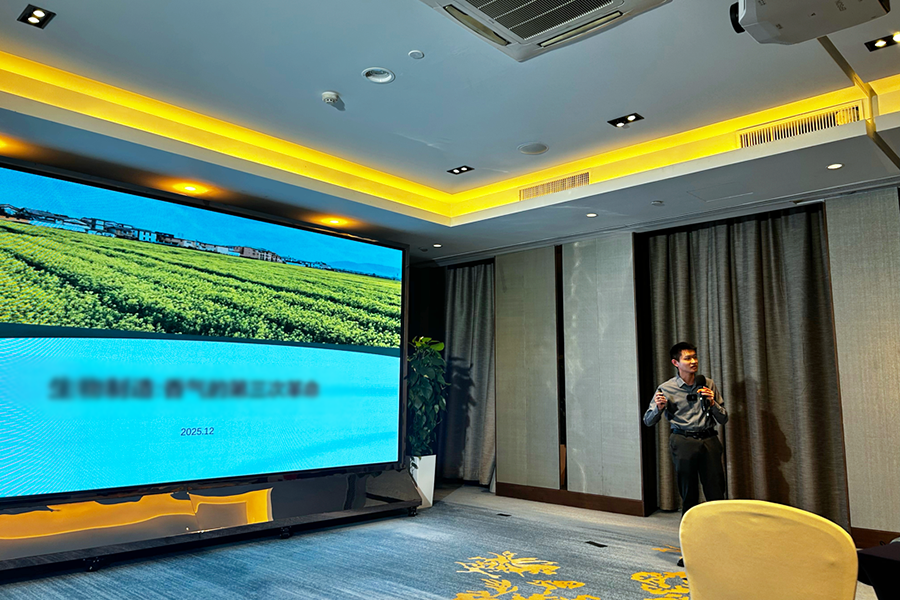 短暂休息后,下午的培训依旧精彩。程博琳博士带来了《生物制造:香气的第三次革命》,他站在行业变革的角度,提出了一个鲜明的观点:“香气生产已经经历了三次大升级 —— 最早是从植物里提取的1.0 时代,后来是化学合成的 2.0时代,现在已经进入生物智造的 4.0时代,整个行业正在悄悄发生大变革”。