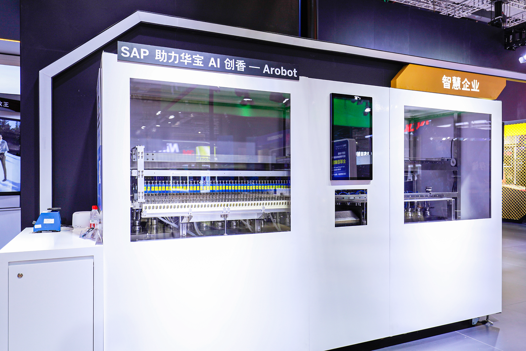 香精自动配样系统则依托智能析谱系统分析得出的数据,利用自动配样机完成香原料的进料配样工作,有效提高香精样品的调配效率,助力研发环节提质提速;